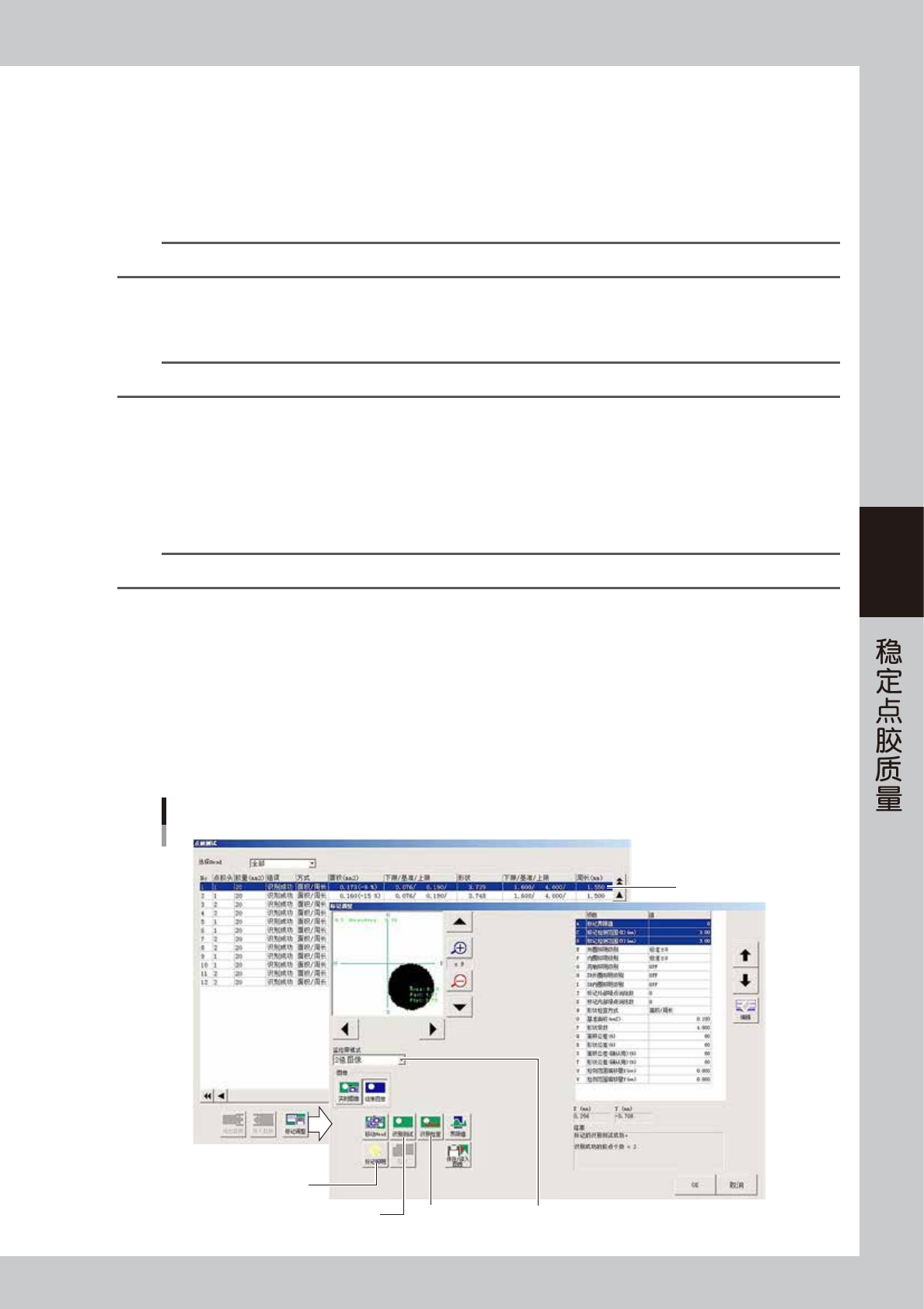 使用“校正量确认”时,按该按钮可以确认胶点的面积是否在设置的“面积公差 ( 确认用 )”、“形状公差 ( 确认用 )”范围以内。