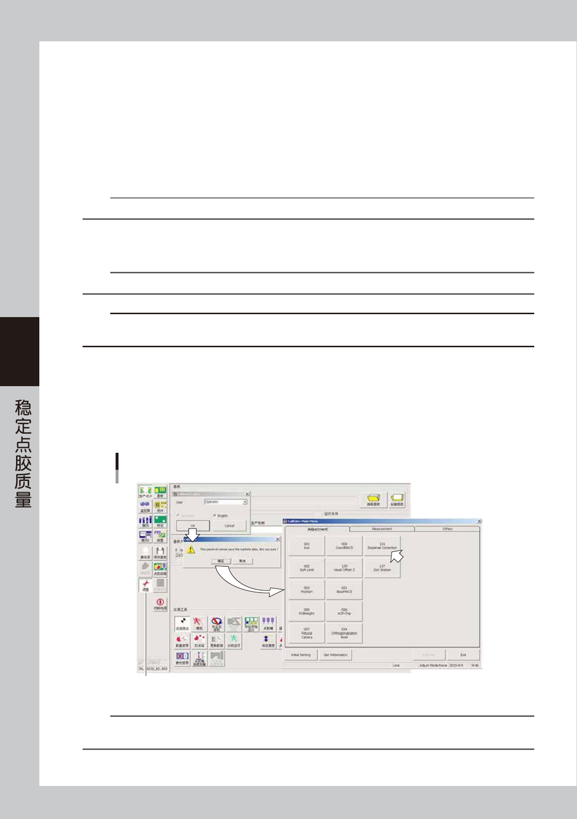 Operator 权限的用户没有保存调整结果的权限。通过 Operator 启动 CalibSm 调整实用工具,可以只测量胶点面积,避免因误操作