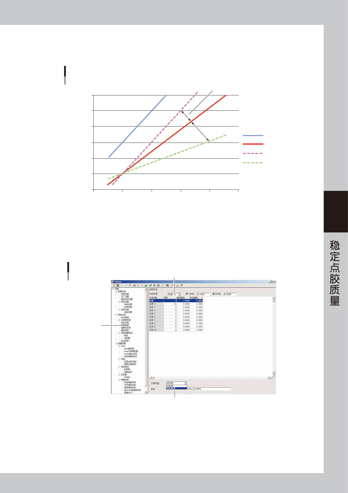 1. 根据创建点胶校正表时 ( 余胶 100% 的胶筒 ) 测量的各定时时间的胶点面积与在 Step5 中记录的余胶为