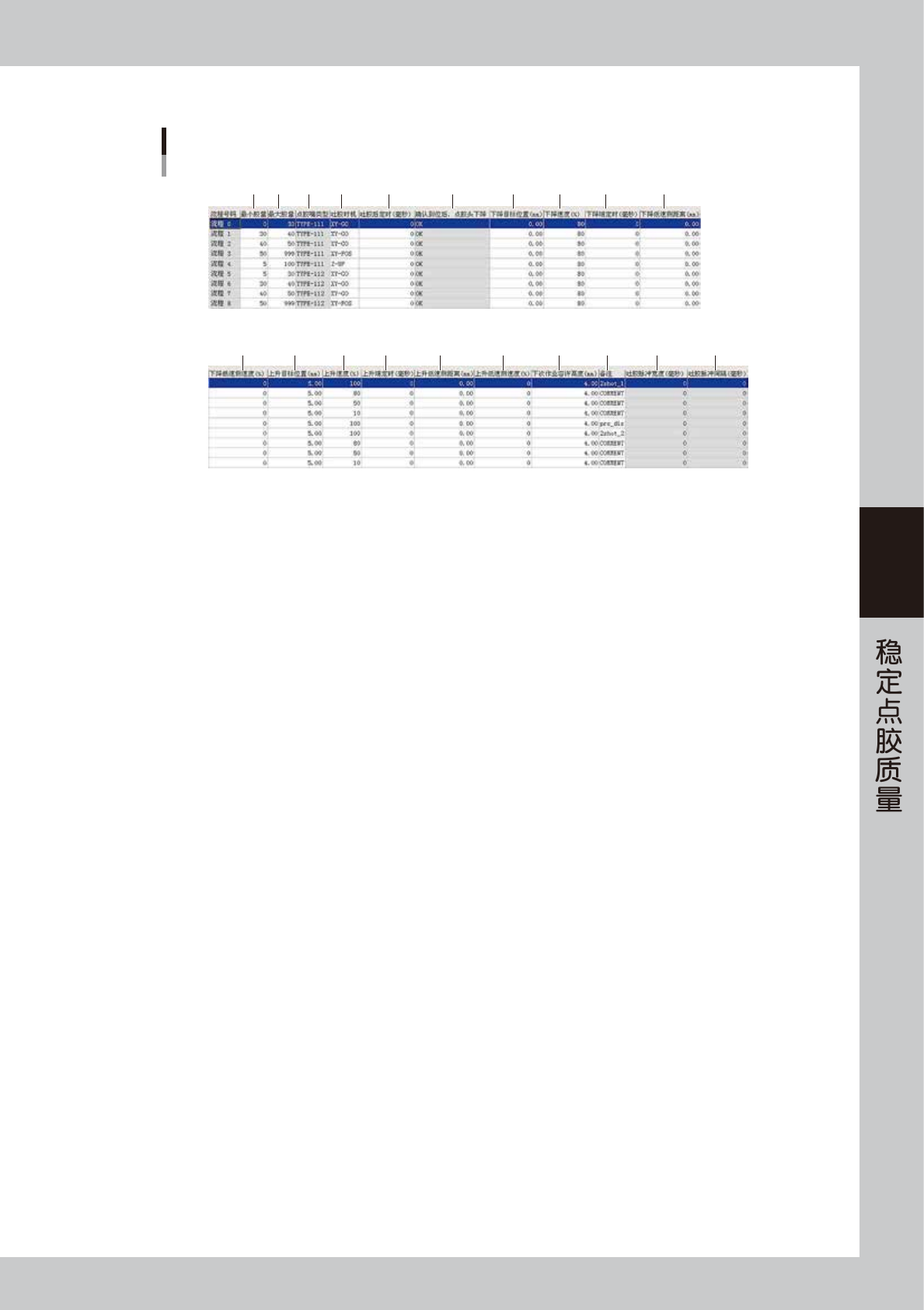 设置适合该流程号码的吐胶动作用的最小胶量。