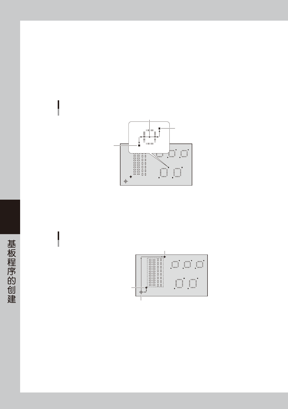 本功能,是使用设置在需要校正的元件的贴装位置图样附近的两个 1 组的标记进行校正 ( 标记形状可以不相同 )。在各个元