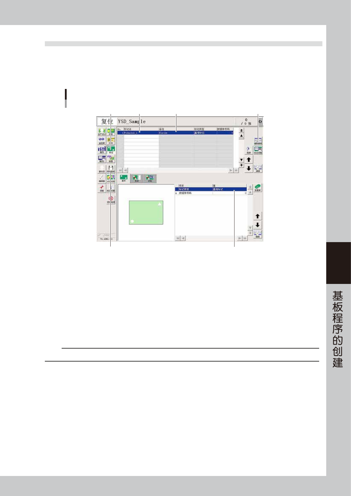 本章节,介绍基板所使用的标记信息的创建方法。如下图所示,标记信息中,每个已登录的标记分别持有各种参数,