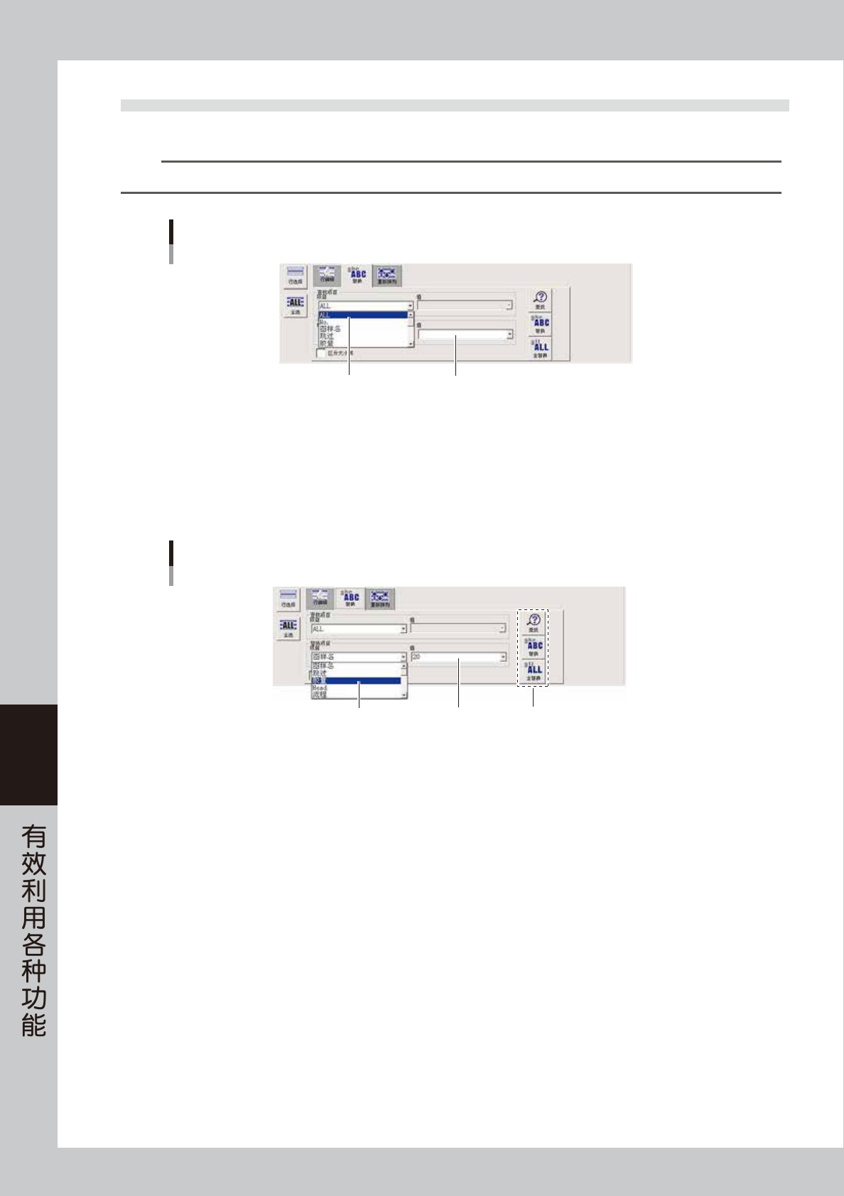 “重新排列”选项卡画面的显示内容,根据所选按钮不同有下列两种显示。