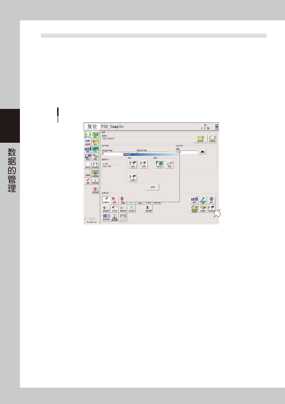 按“生产设计”画面的 [ 系统备份 ] 按钮。