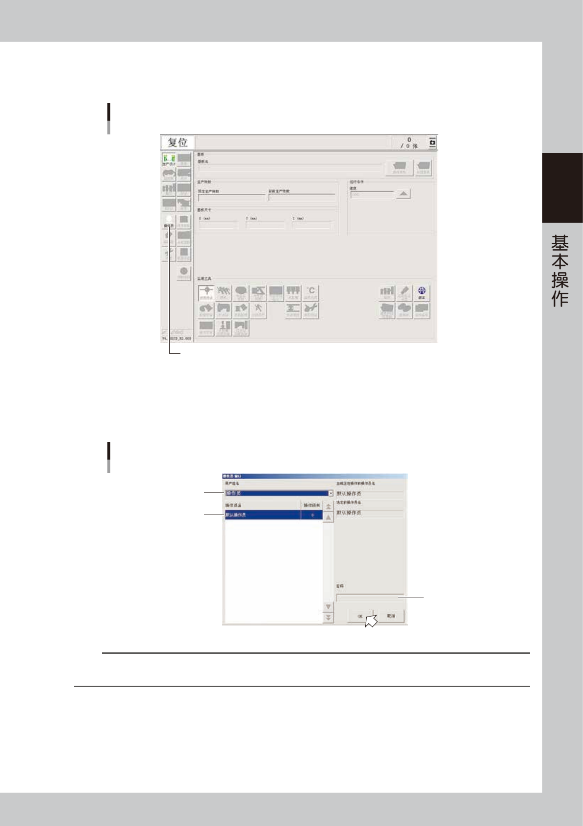 即只允许操作基本内容。操作级别可根据需要修改。此外,通过设置密码与操作级别,还可以添加操作员或指定可操作的项目。