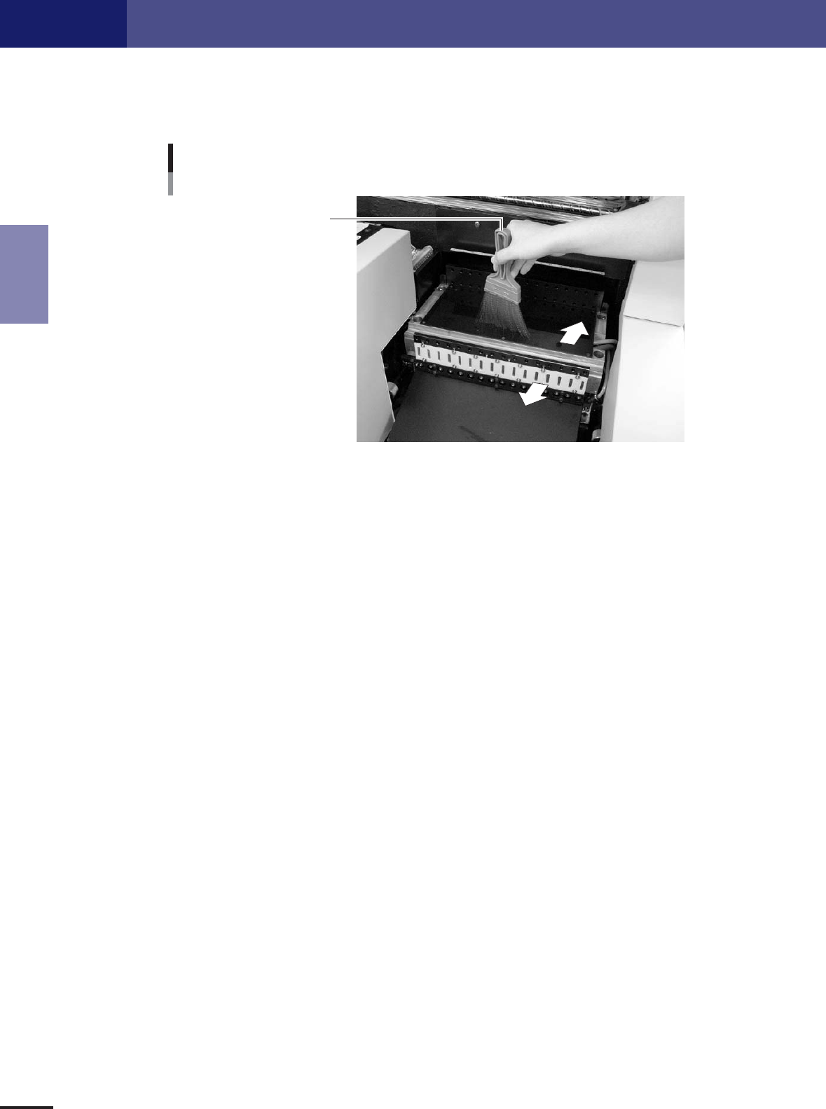 Clean the feeder plate by using the brush supplied with the machine. Chips or foreign matter falling on
