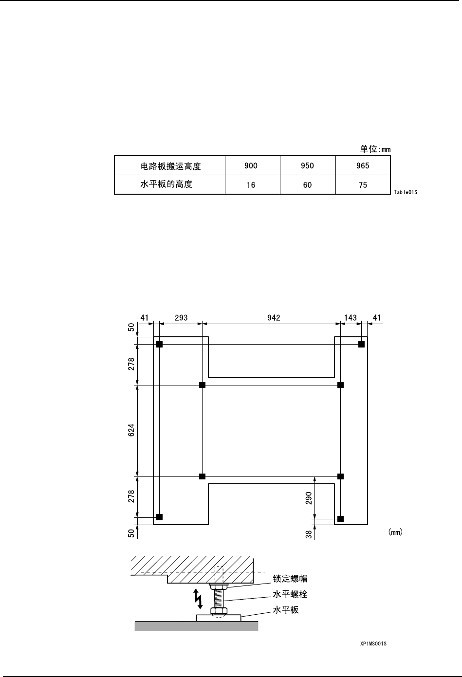 4. 确认电路板的搬运高度、机器的水平度是否正确之后,请把各个锁定螺帽拧紧。