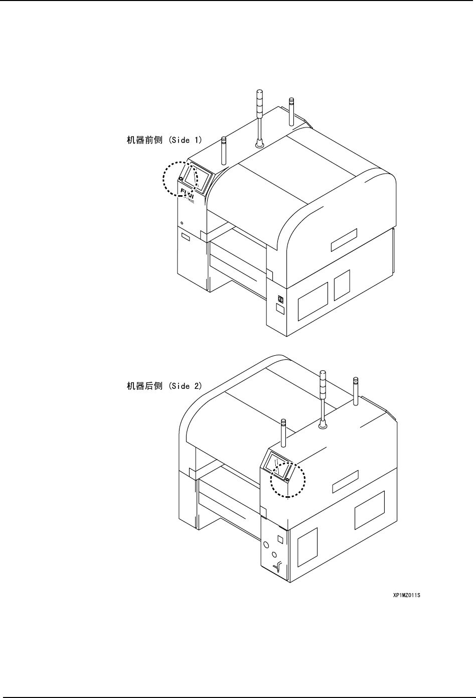 发生紧急情况时,请按下任何一个红色的 [ 紧急停止 ] 按钮,使机器停止。[ 紧急停止 ] 按