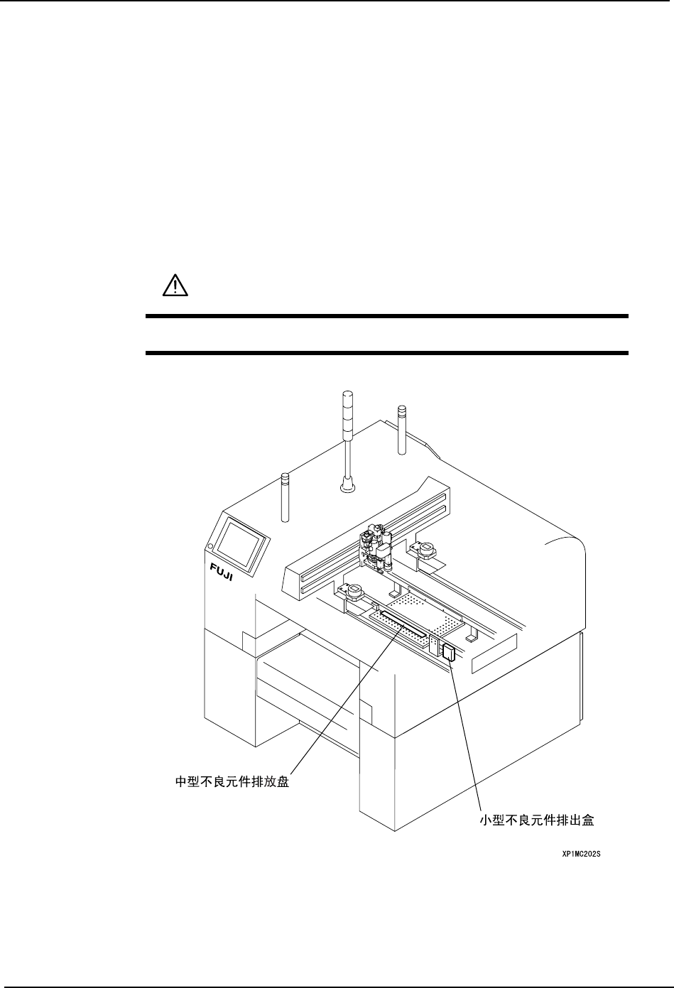 备注 ) 当不良元件排放盘装满后,操作面板上会显示出警告的信息。请将排放盘中的不良元件清除