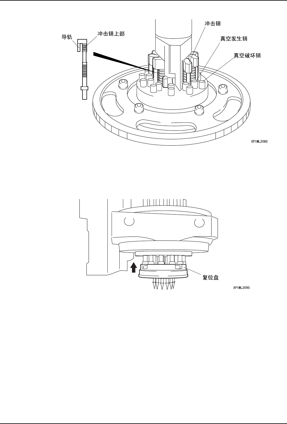 a. 将压块部分返回上方后,用手将复位盘向上按压,使所有的真空破坏销和真空发生