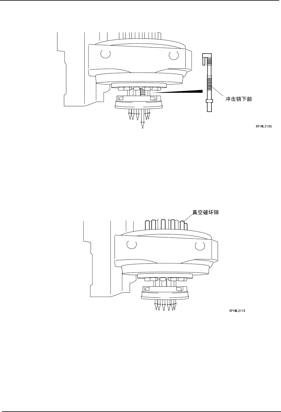 备注 ) 将一根冲击销降低后,可以用手按下其他的冲击销并降低。