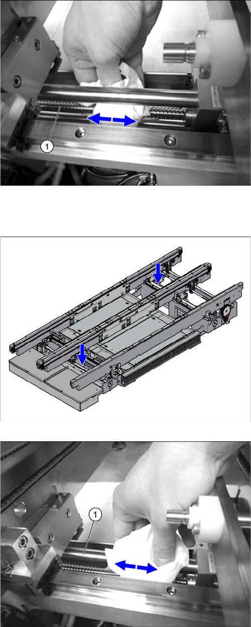 Major Maintenance Maintenance Tasks for the Conveyor 5.6.3 Performing Maintenance Tasks 70 Maintenance Manual SIPLACE SX1/SX2/DX1/DX2 Cleaning the Clamping Surfaces on the Basic Carrier (Dual Conve yor Only) SXDX12 V1 Cl…