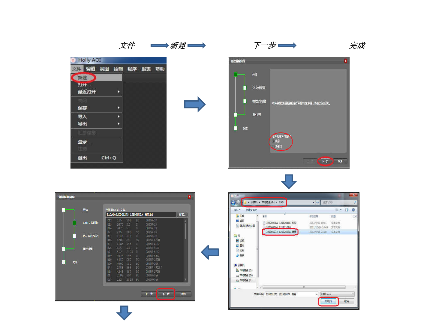 HOLL Y AO I 程序制作 1. 创建新程序 1). 导入 CAD 打开软件点击 菜单 择是否使用 CAD 数据 设定产品名称 , 板长 , 板宽 .