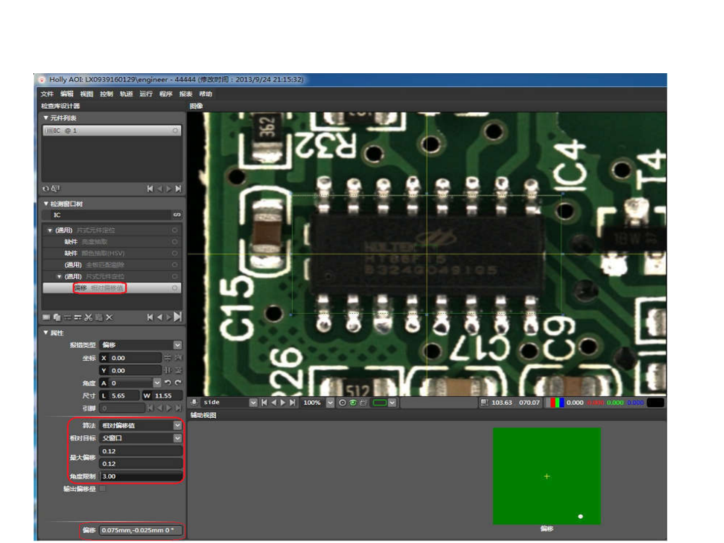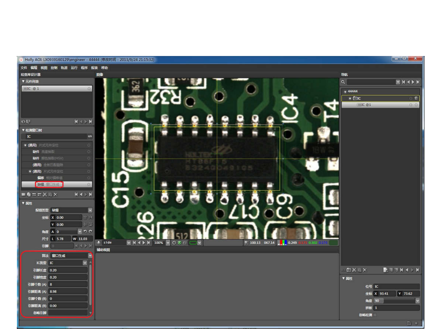 • 1.3.2. 缺锡 • a) 算法 : 窗口生成 ( 此项只进行引脚生成 , 不进行检查 ) • 光源 : 无 • 参数设定 : I C 类型 , 引脚个数 , 引脚距离 .