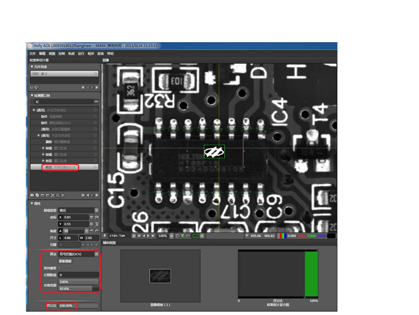 • 1.3.5. 极反 • a1) 算法 : 符号匹配 (OCV) • 光源 : 无 • 参数设定 : 更新模板,合格范围 •