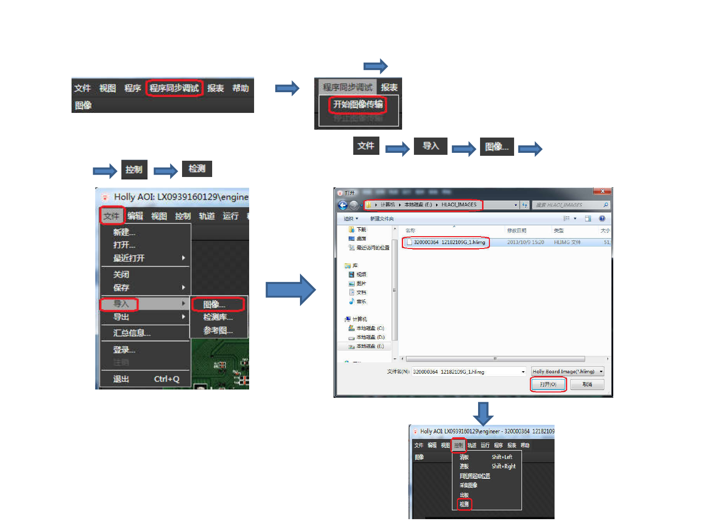 • b)重新打开一个软件,并打开当前测试程序单击 选择需要倒入的图像