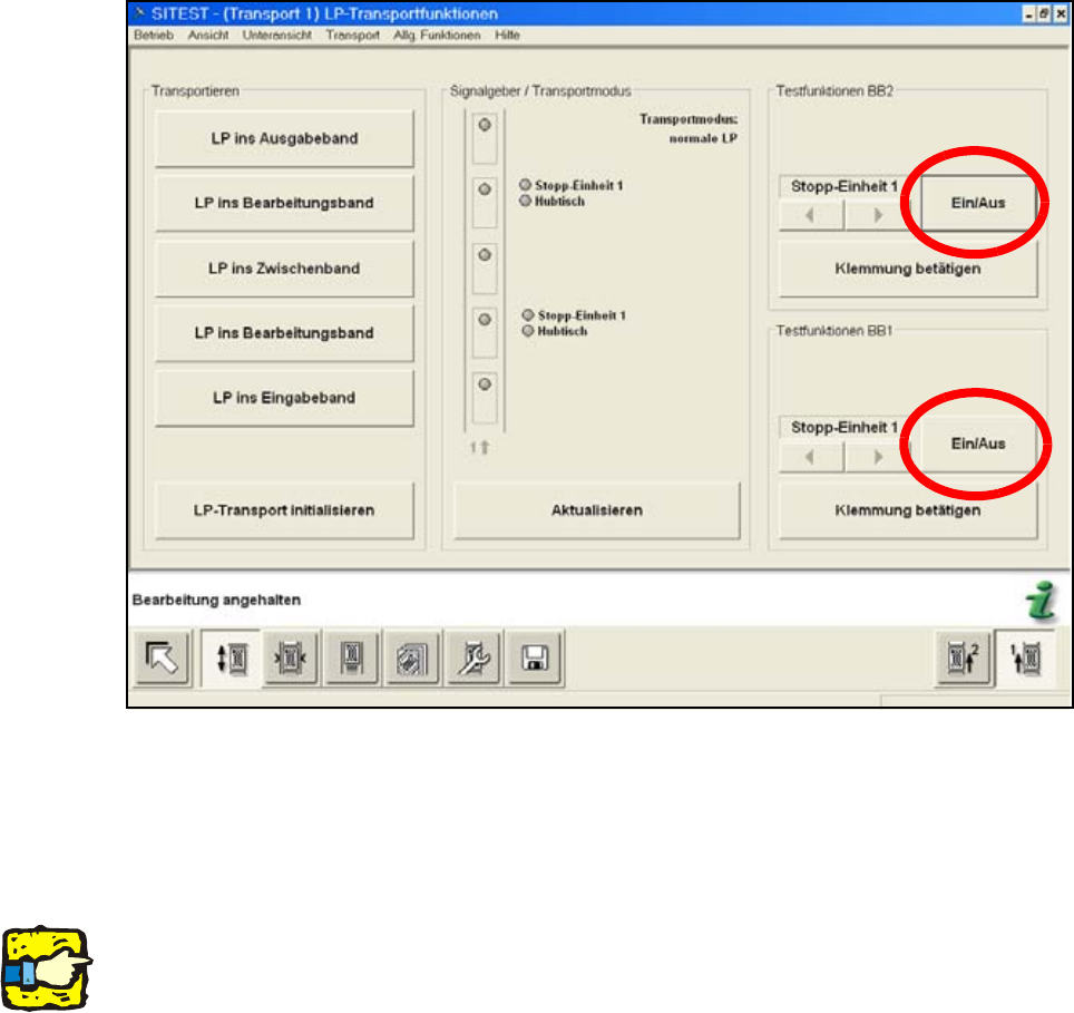 O Wechseln Sie nach dem Neustart in den SITEST Transportfunktionen.