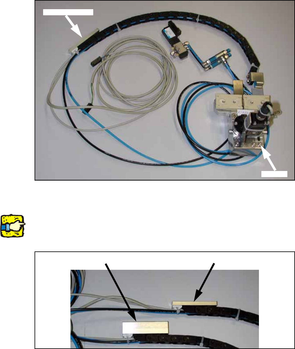 A distance block is screwed onto the loose end of the trailing cable. The height of this spacer var-