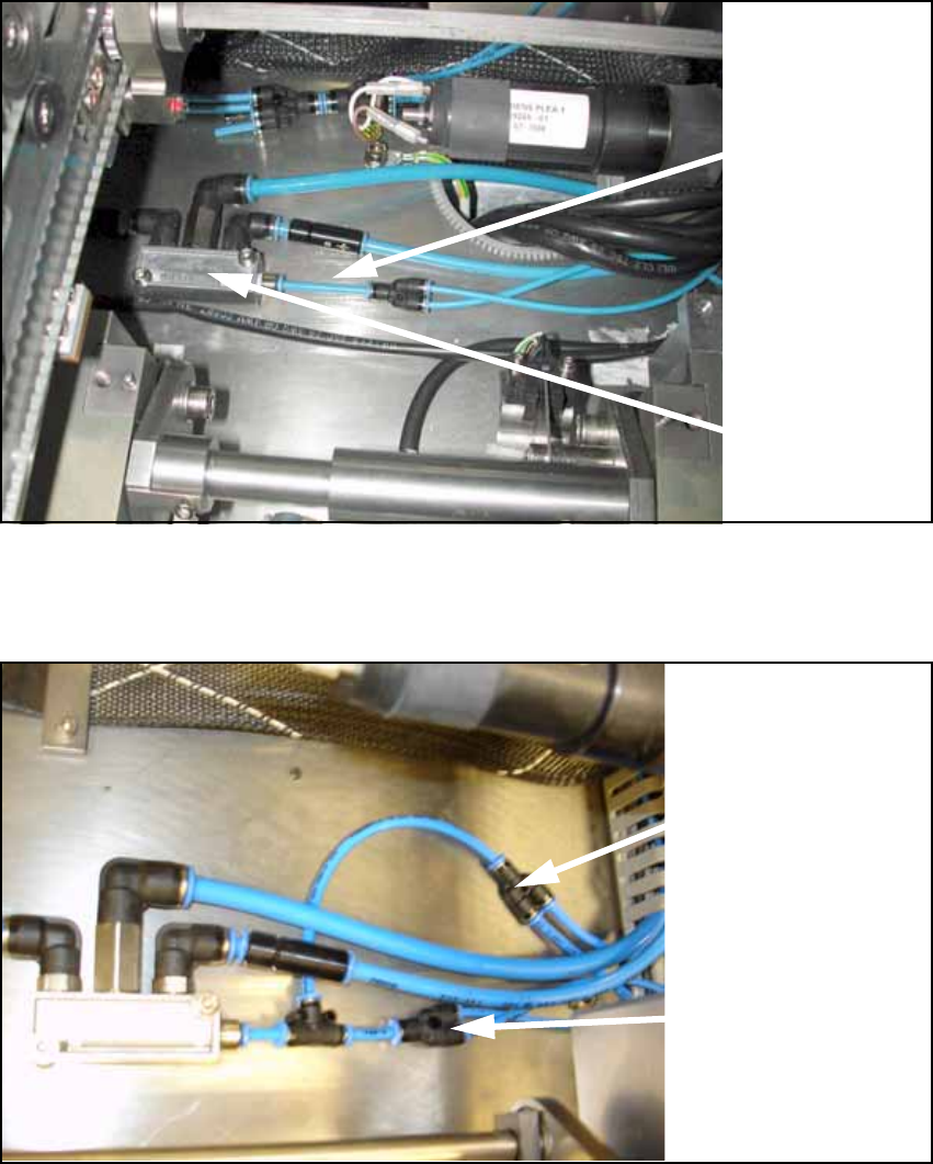 O Connect the prepared hoses to the conveyor pneumatic distributor as shown in the following
