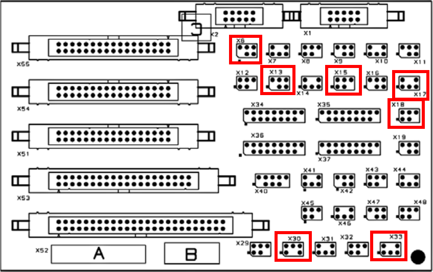 O Plug the coded plug onto location X6 on the conversion board for both conveyors.