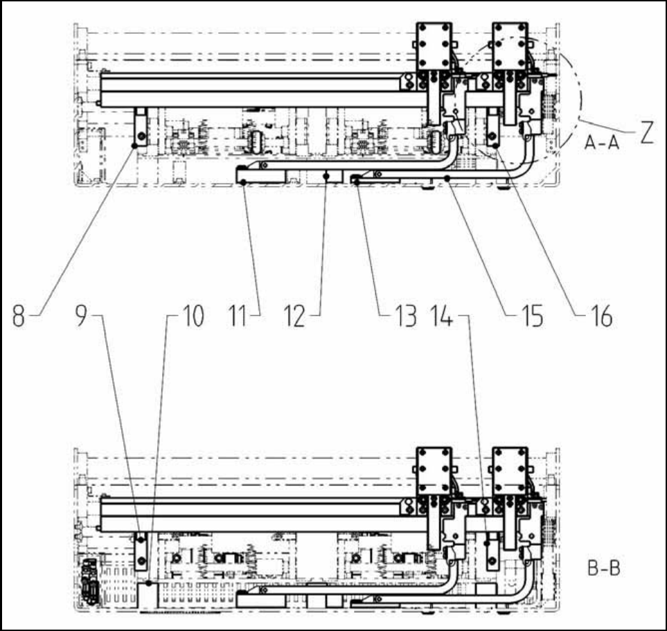 Assembly Instructions PCB Stopper Single Conveyor SIPLACE S-27HM / HS-60 / D4 / D 3 / HF- / X-Series Edition 06/2007 201 Fig. 180 Overview HF-/X-Series /D3 (Fig. 4) Dual conveyor Legend (Figs. 3 and 4) Dual conveyor 15 1…