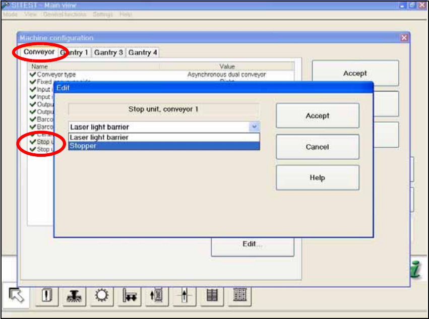 O Change over to the SITEST and in the "Machine configuration" menu activate the stopper for