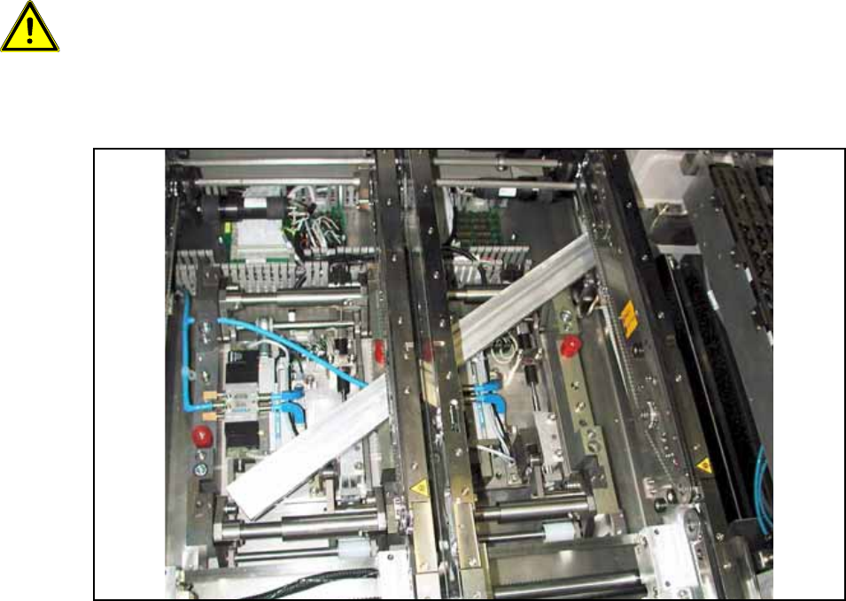 O Stellen Sie die Transportspur, die auf 50 mm eingestellt wurde, auf maximale Transportbreite.