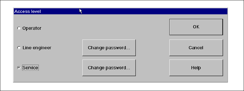 You can choose between the access levels "Operator", "Line engineer" and "Service". Passwords