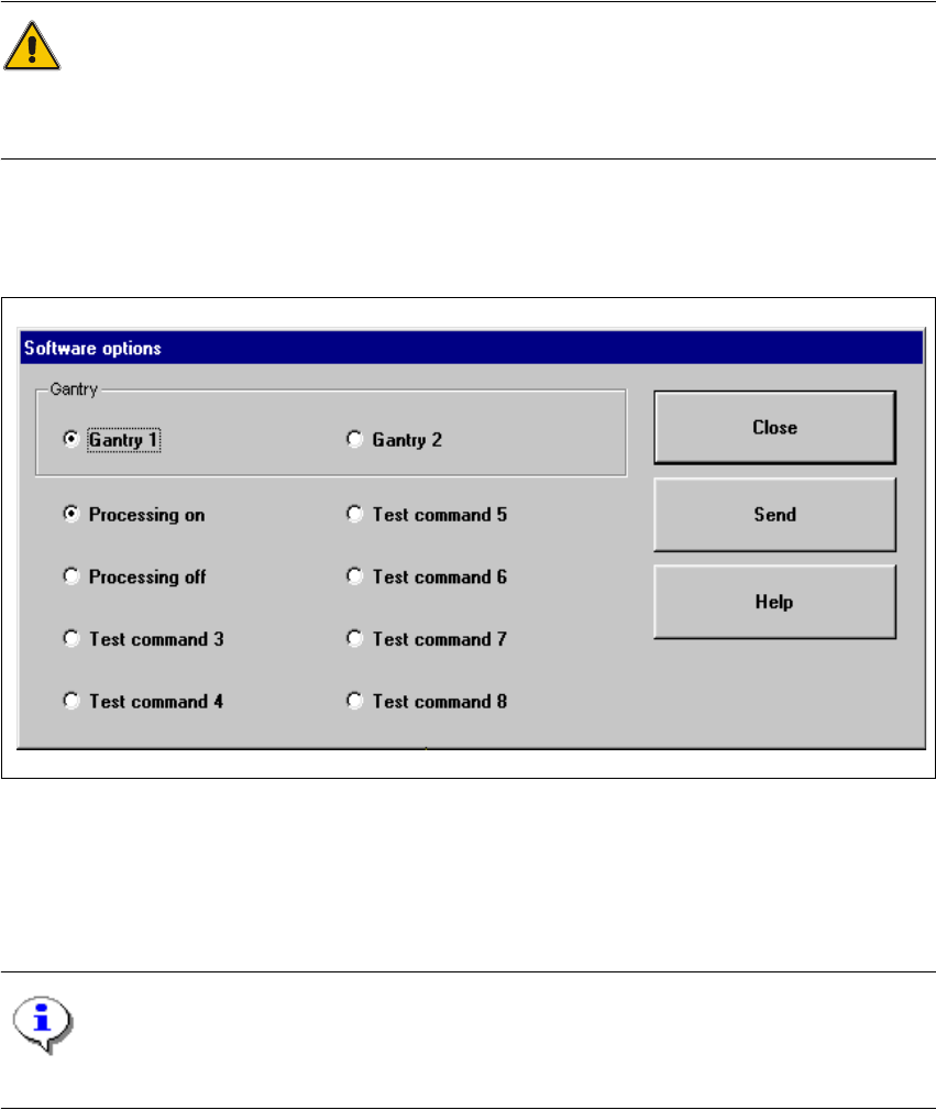 Æ Select the required gantry and activate/deactivate the test commands by clicking the corre-