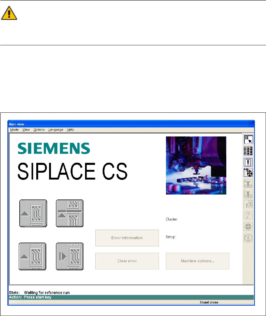 Fig. 4.1 - 2 Main view after loading the station computer software (example: SIPLACE CS)