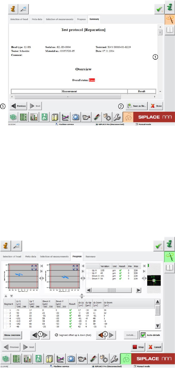 einzelnen Messergebnissen navigieren. Mithilfe der roten Pfeile (2) navigiert man direkt zu den