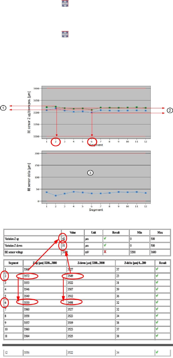 SIPLACE „Head Ver ification“ Bedienungsanleitun g Ausgabe 01/2015 21 6. In diesem Diagramm werden die W erte der Segm ente für Z -up and Z-do wn veranschaulicht. Grüne Linie Z- up Blaue Linie Z-d own Rote Grenzlinien…