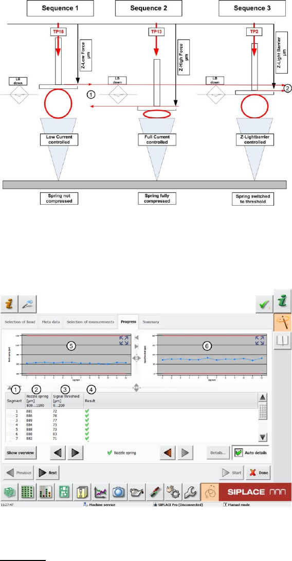 SIPLACE „Head Ver ification“ Bedienungsanleitun g Ausgabe 01/2015 27 Ablauf der Messung im Detail: 1. Zuerst wird der komplette K opf referiert und die Vak uum pipetten an d er Pipettenstation a uf die DP gedrückt, um ei…