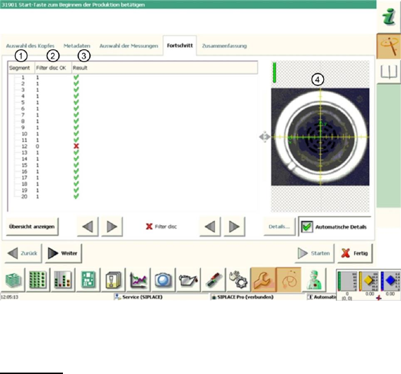 Mit dieser Messung werden die Filterscheiben an den Segmenten des CP20A-Kopfes überprüft.