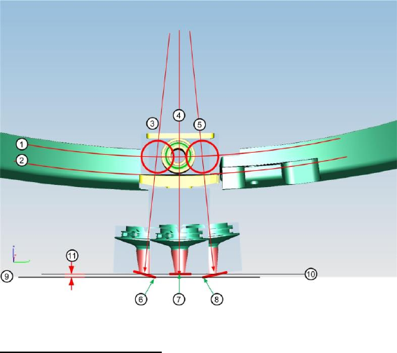 5. Mittelachse des Mitnehmerlagers am Rachenanschlag rechts