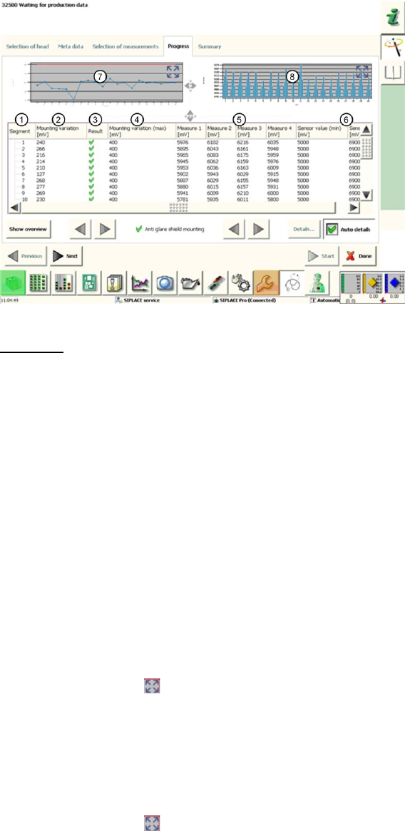 SIPLACE „Head Ver ification“ Bedienungsanleitun g Ausgabe 01/2015 35 4.5.2 Erklärung des Messergebnisses im Menü Progress Nach Beendigung der Messung ersc heint im Menü Progress folgendes Ergebnis: Abbildung 22 : Ergebni…