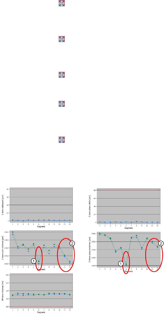 Fehler bei Z down delta pick [µm] oder Z down delta place [µm] an einzelnen Segmenten: