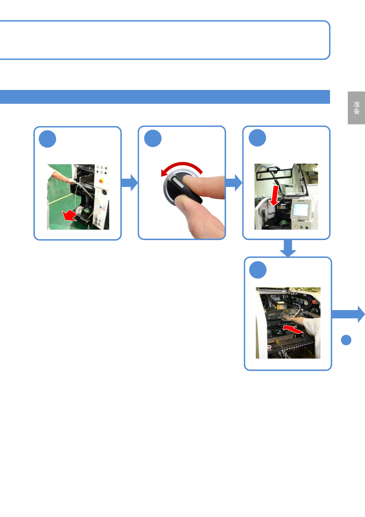 NPM-D3 EJM6DC-MB-02O-10 2-5-1 -1 + 1 3 4 5 至步骤 2 个别 准备 操作篇 2-5-1 X 轴自动移动的方法 ( 前侧 / 后侧的 X 轴驱动单元移动到 各 自的中央位置 ) 对自动移动和手动移动 X 轴的方法进行说明 。 卸下交换台车 (→ 『维修保养篇』 P.3-2) 吸嘴交换器/试点胶单元/ 校正治具的更换 1 伺服开关置于 OFF 打开安全盖 1