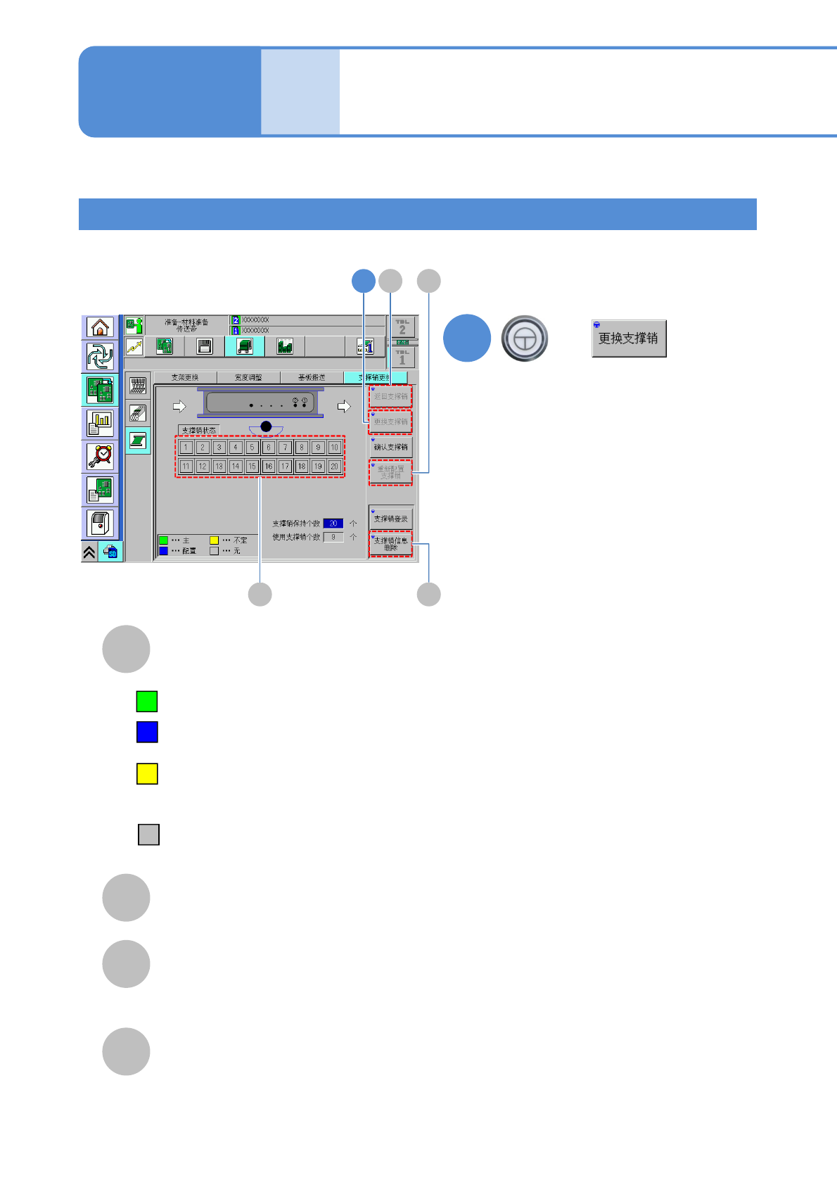 NPM-D3 EJM6DC-MB-02O-10 2-5-8 -6 确认支撑销的数量 1 + 输入设备内的支撑销数量 (XY 单元退避,成为可以增减支撑销的状 态 ) 当为双轨模式时,请在需要注册销的 轨道上切换轨道显示图标 。 (→P2-2-1- 9 ‘ 轨道 切换按钮 ’) 3 3 + ■设备内配置的支撑销的数量和登录的支 撑销使用数量不同时 ●重新登录或者设置,使两者数量相 同。 ( 确认支撑销的数量和位置,信息被更新 ) 4 …