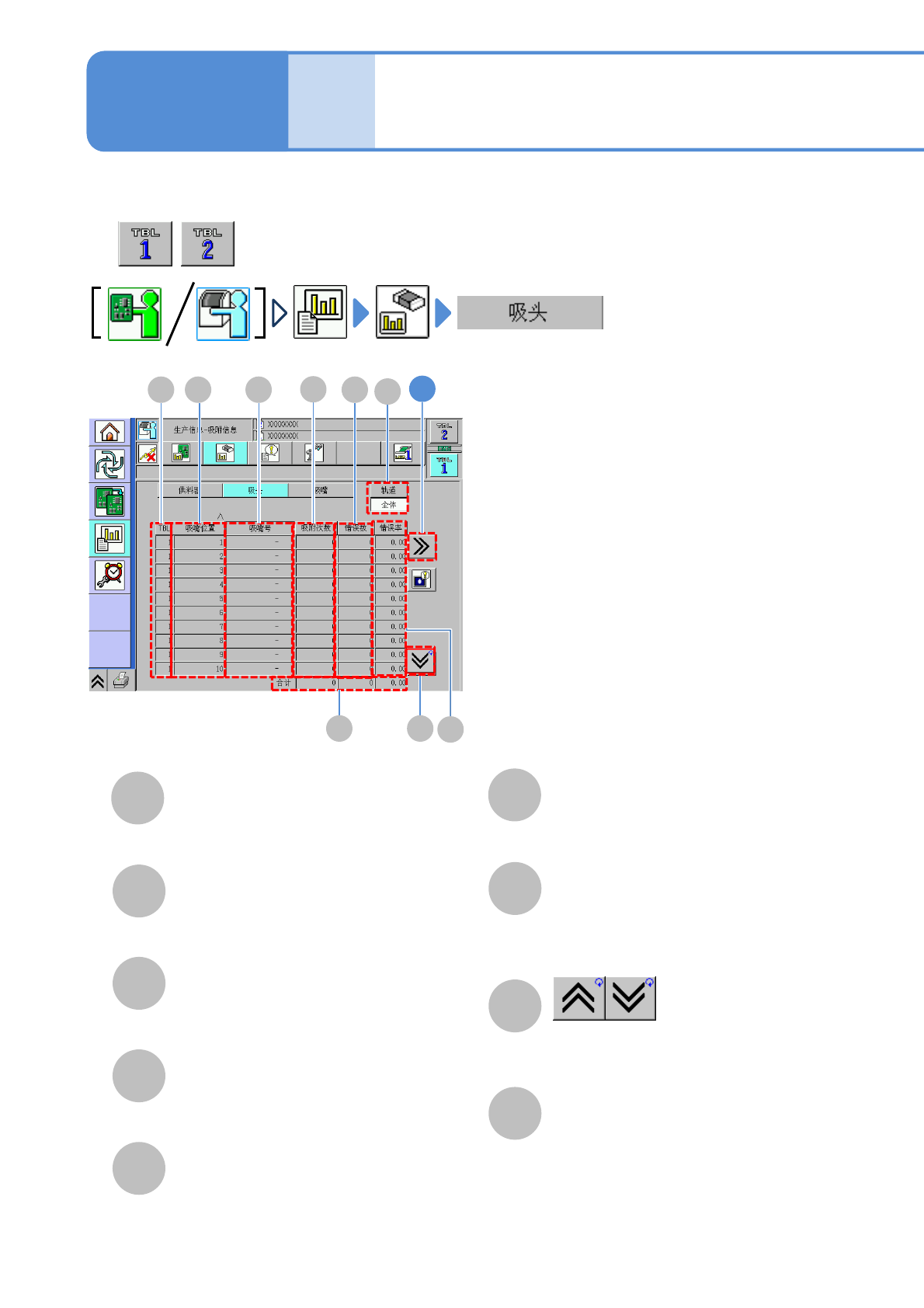 各贴装头的吸着次数。