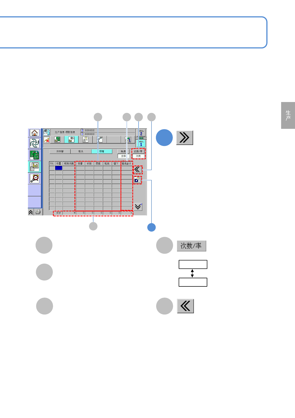 所有吸嘴的吸着次数/率的合计,或者各