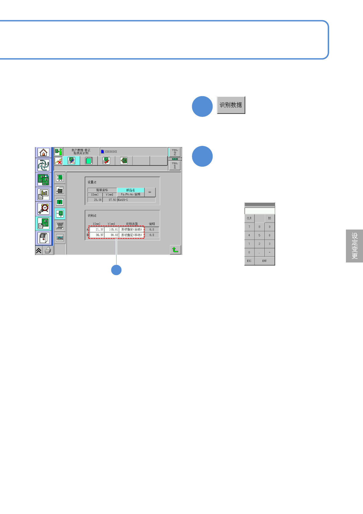 NPM-D3 EJM6DC-MB-06O-09 数据 修改 对生产数据的确认和修改方法进行说 明。 2 1 生产数据的修改 3 修改画面上的数据 ●轻触画面,显示输入数值的画面 ( 下图 ) 。 1 ■设定超出基板的左右端长度时 2 3 1 修改画面上的数据 ●轻触画面,显示输入画面。 3 4 4 操作篇 6-1-13 6-1-13 -5