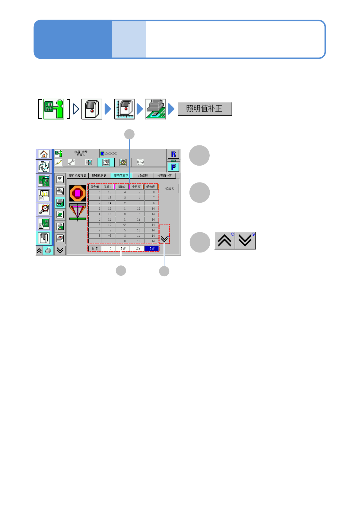 NPM-D3 EJM6DC-MB-07O-12 机器参数 操作篇 7-3-1 1 7-3-1 1 A A B C B C 检查头照相机信息的确认 ( 检查头 ) 确认检查头照相机部的补正值 ( 校准作业的结果 ) 。 歪曲补正 通过透镜补正歪曲至外侧或者内侧的 光。 明暗补正 使检查区域保持均一相同亮度而进行 补正。 色彩平衡 登录检查区域的色调结果。
