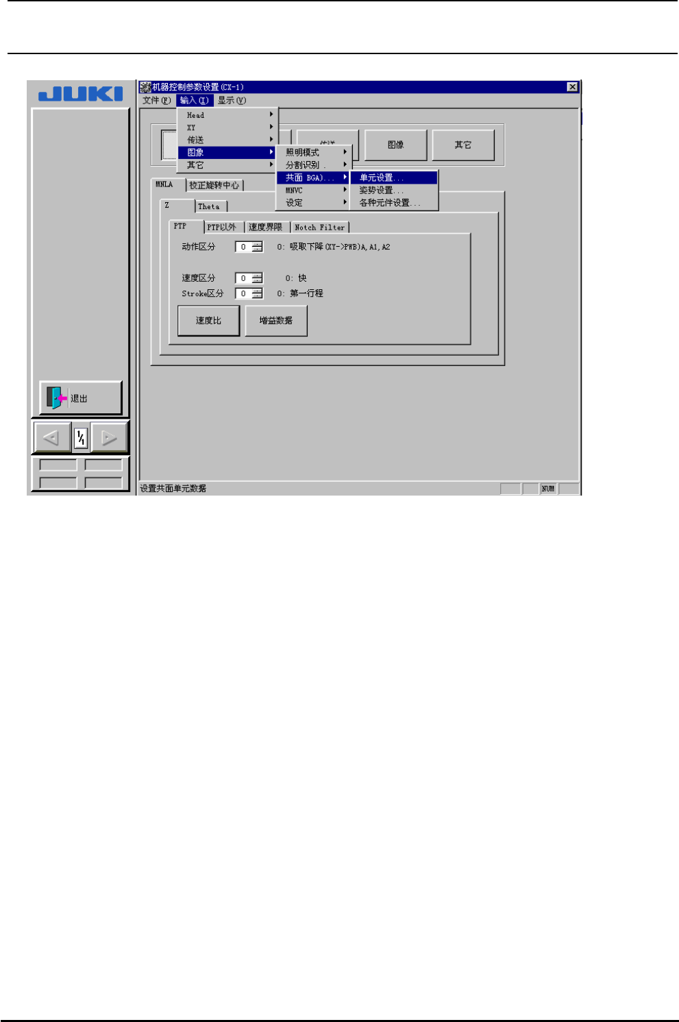 R e v 2 . 0 0 机器控制参数 2-9 图 2-2-7 图像菜单 ( 共面性 ) (3) 共面性 进行共面性参数的设定。 ( a ) 进行装置的设定。 ( b ) 进行姿势控制的设定。 (c) 进行各元件种类的设定。