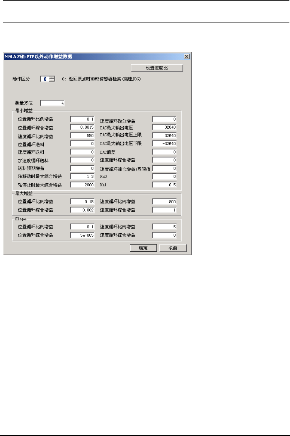 从速度比设定画面(图 4-1-3)∶ [设置增益数据]按键