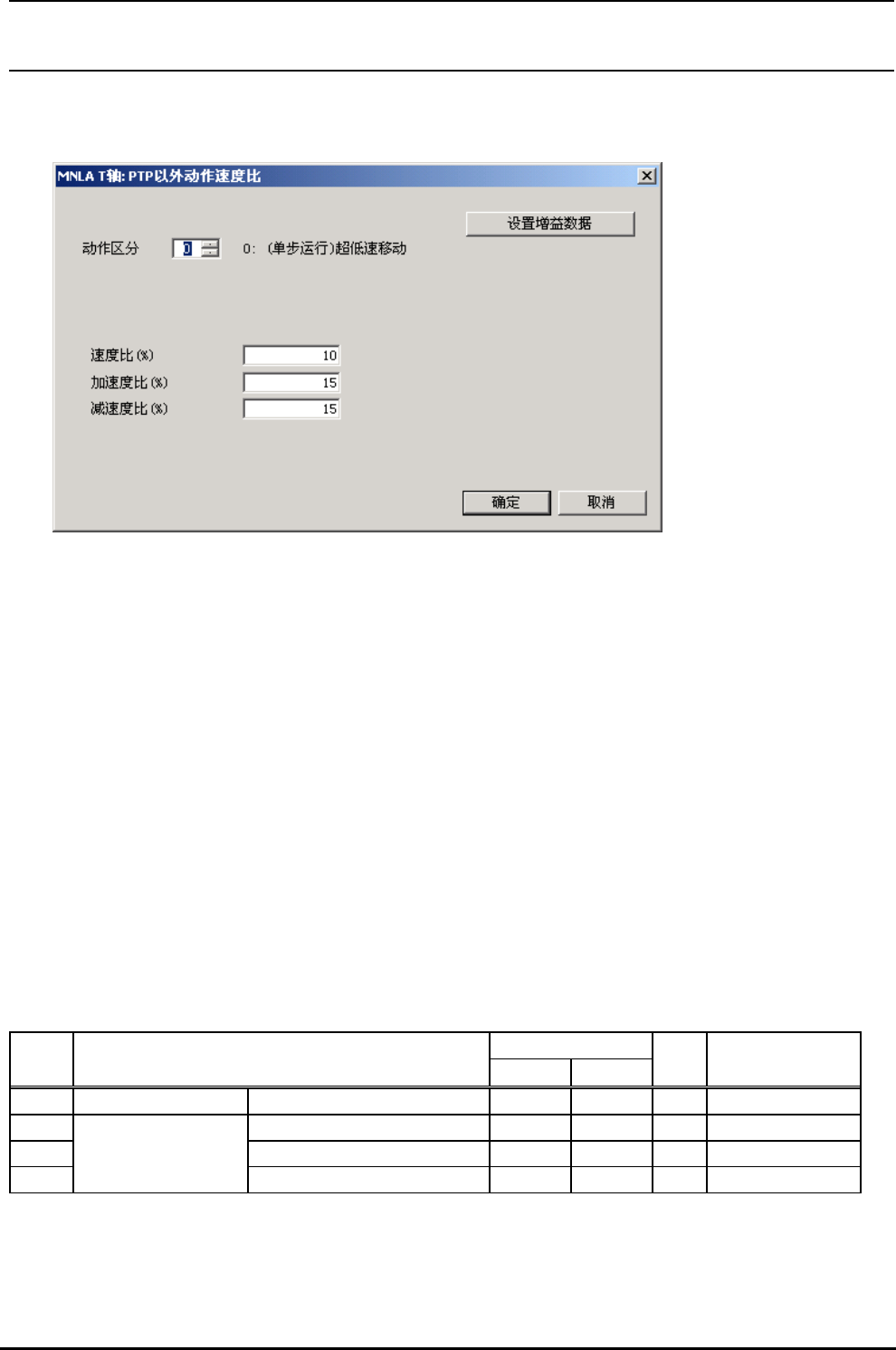 注 1) 选择了[设置增益数据]按键之后,增益数据设定画面(图 4-1-10)被显示出来。此时,在现在显示的“动