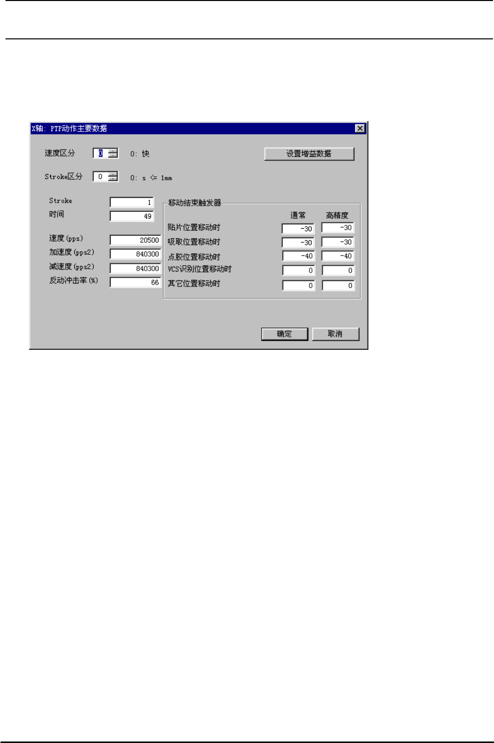 注 1) 选择了[设置增益数据]按键之后,增益数据设定画面(图 4-2-2)被显示出来。此时,在现在显示的“速