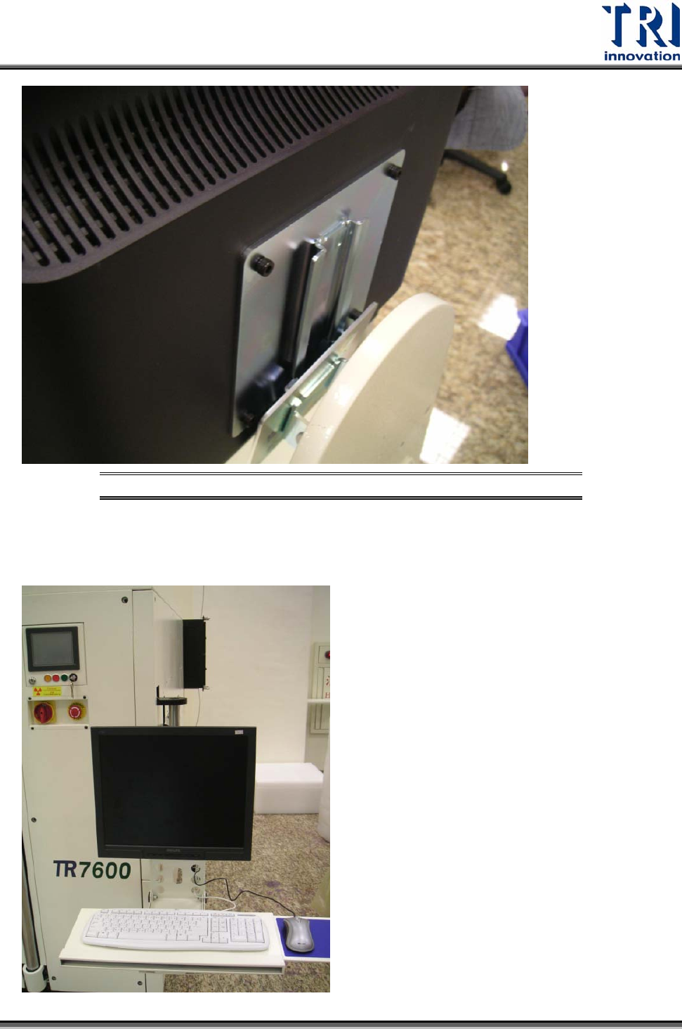 Test Research Inc. 圖 26: 安裝螢幕 15) 將鍵盤及滑鼠放置妥當,且將其訊號線經由孔位拉到後方。 TR7600 User Guide ‐‐ Installation 21