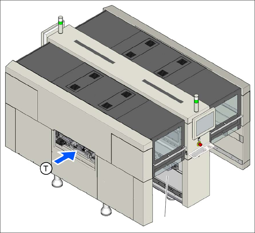 《用户手册》 SIPLACE X- 系列 1 介绍 使用软件版本 708.1 或更新 05/2015 版 1.2 贴片机说明 31 1.2.2 贴片机序列号 贴片机的序列号位于贴片机框架 内侧的位置 1 处。 T: 0 图 1.2 - 1 带有产品序列号的铭牌位置 (示例为 SIPLACE X2 S / X3 S / X4 S 贴片机) (T) 行程方向 (1) 铭牌 (1)