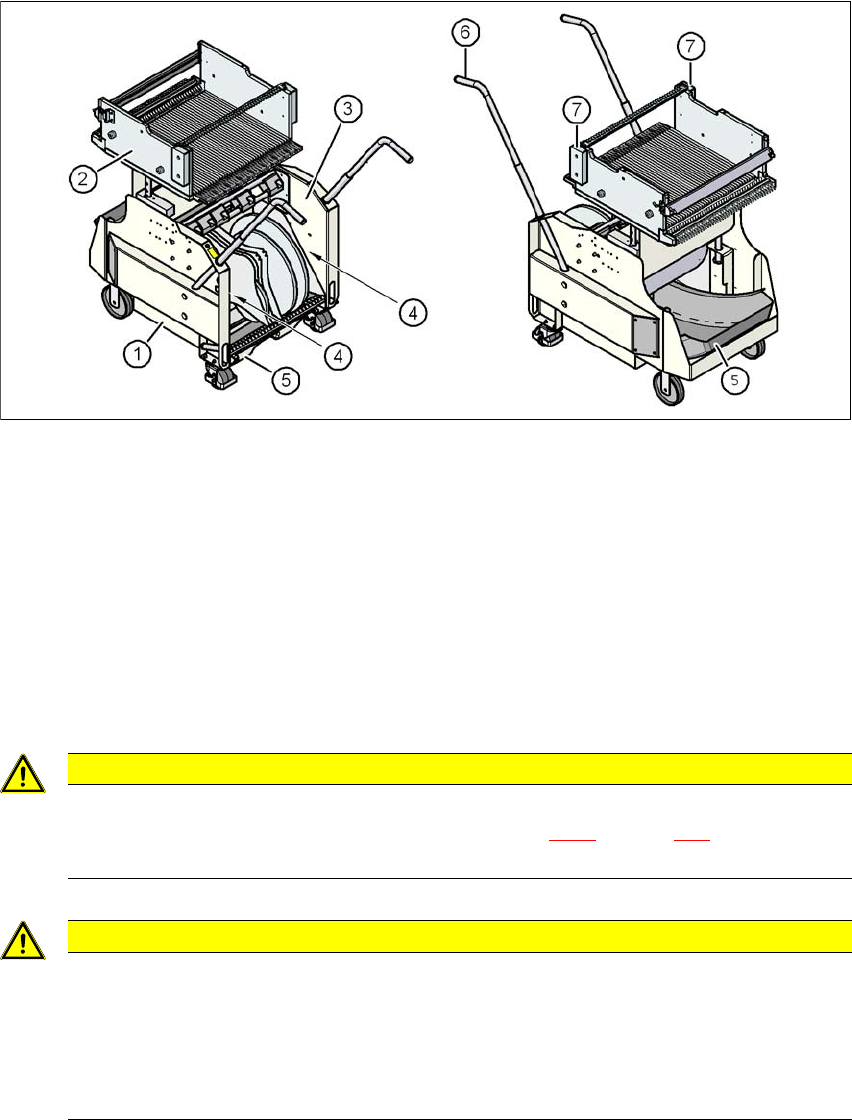 当您将料带抛料仓从元件料车中拉出来时,请遵守 5.8.2 部分,第 289 页上的 “ 安全须